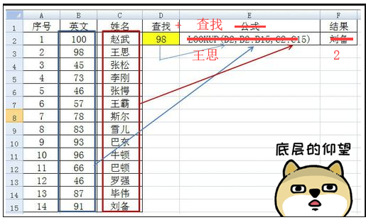 假设这次要查的条件是  英文  姓名  ,需要显示结果【序号】